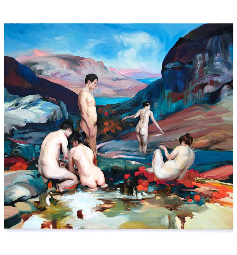 - La obra del catalán CATELLVI reinvindica un retorno al color como medio de representar la desnudez humana en su alegría del disfrute de la tierra.