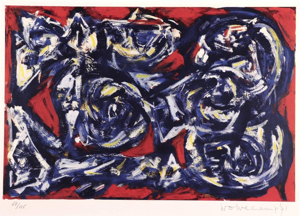 - El holandés WOLVECAMP, antiguo miembro del grupo COBRA, deposita en sus obras lo que era un núcleo introvertido que ya no aguantaba más sin la correspondiente extraversión.