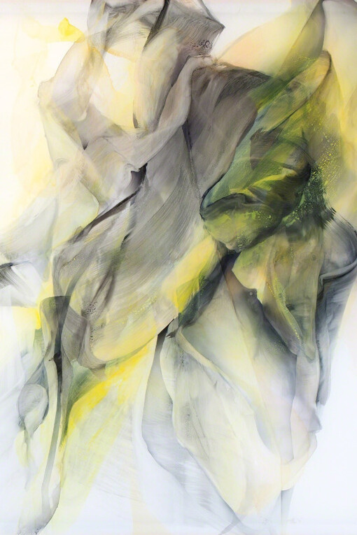 • Asi es como la alemana SCHMITTEN concibe su pintura, como el retrato de su cuerpo sobrevolando el espacio y adquiriendo así otra dimensión de luz y color.