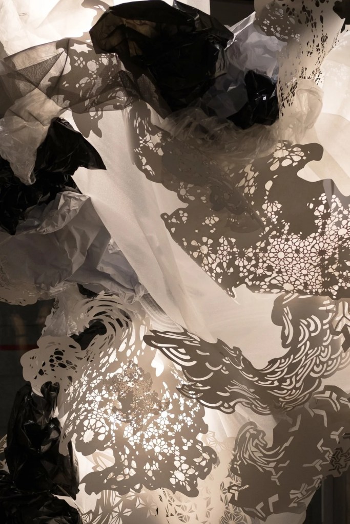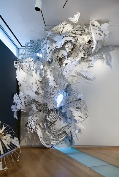 - En estas exuberantes y ubérrimas esculturas/instalaciones de la americana PEARLMAN nos asombra en primer lugar la diversidad de técnicas y materiales empleados, así como su disposición dentro del espacio para la búsqueda de una mayor penetración en la visión.